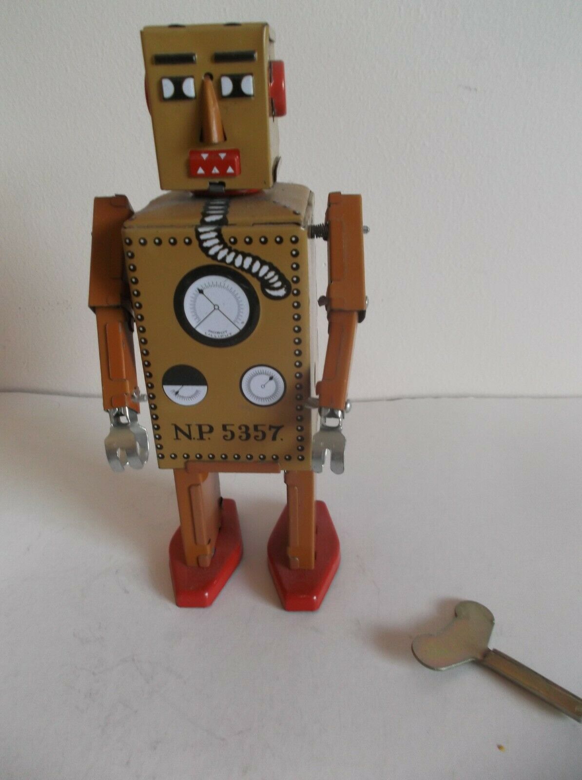 VINTAGE STYLE ROBOT LILLIPUT TIN WIND UP TOY WITH KEY