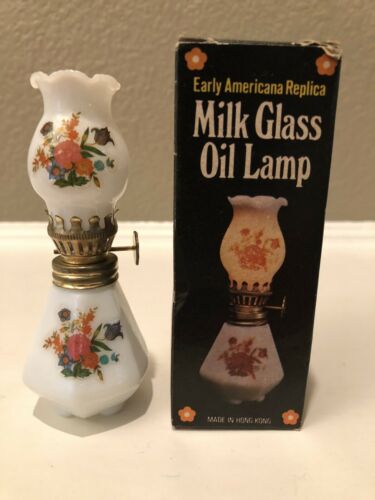 Title (ebay affiliate link): VTG Americana Miniature Mini Milk Glass Hurricane Oil Lamp Hong Kong 4.5 Inch