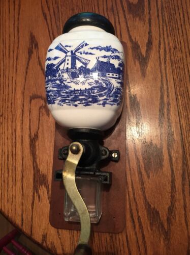 Title (ebay affiliate link): Vintage Cabinet Wall Mount Coffee Hand Grinder Milk Glass Dutch Windmill