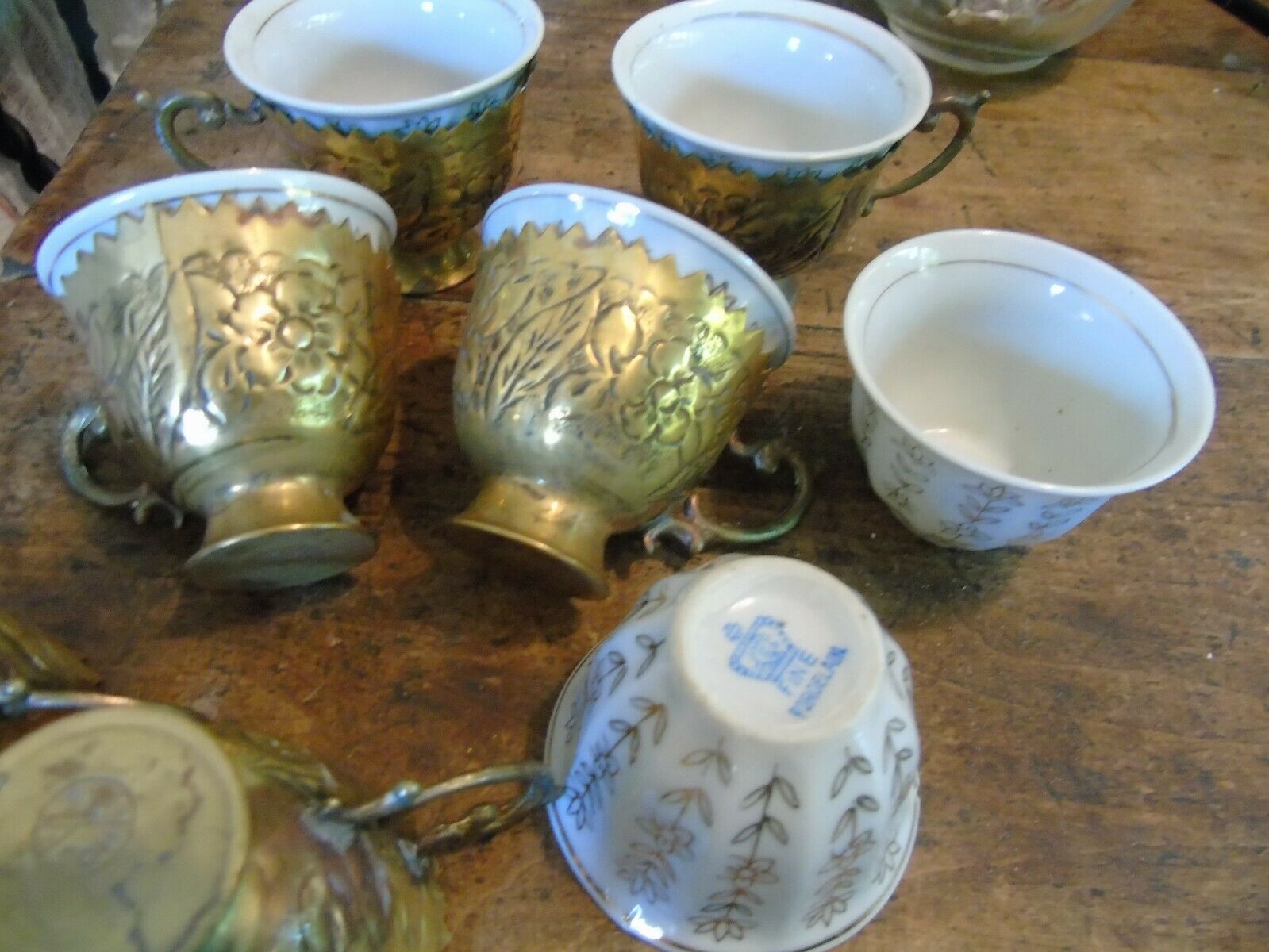 Antique Espresso / Demitasse Cups set of 6 with Porcelain Liners