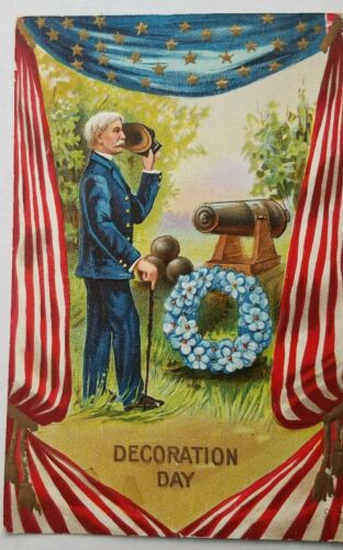 Title (ebay affiliate link): Vintage 1913 Decoration Day Postcard, Soldier, Cannon, Wreath, Patriotic Bunting