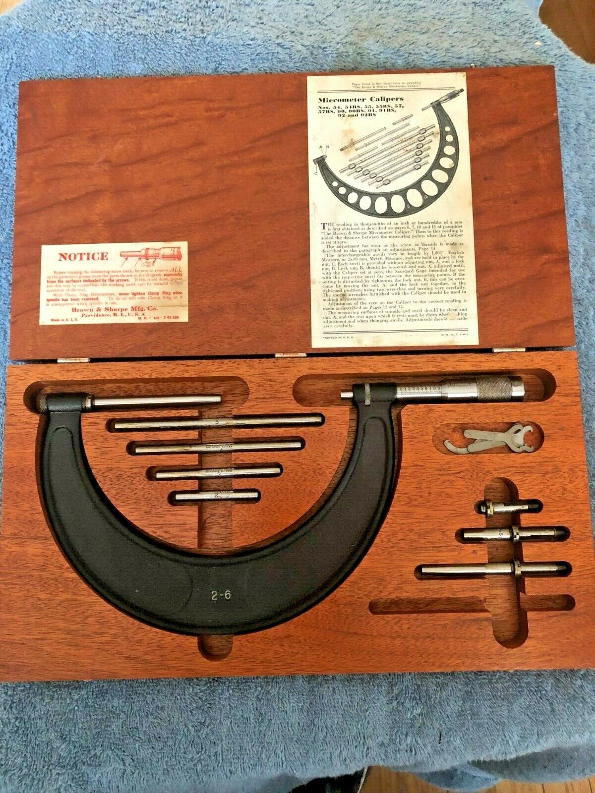 BROWNE & SHARPE MICROMETER 2-6 CALIPER NO.55 - CLEAN WITH WOOD CASE