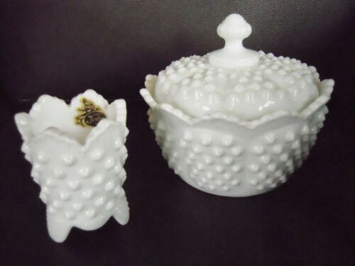 Title (ebay affiliate link): Lot of 2 Fenton White Milk Glass Hobnail Toothpick Holder, Covered Bowl - Label