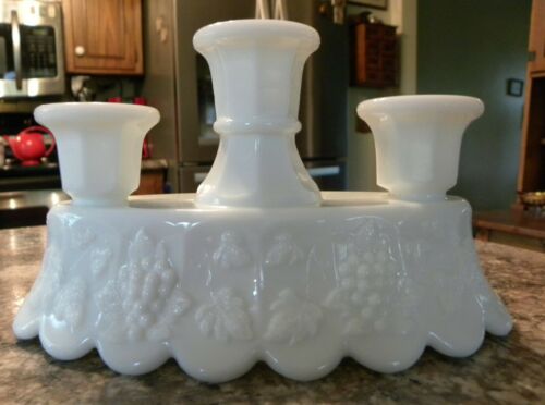 Title (ebay affiliate link): Westmoreland Paneled Grape Milk Glass Three Light Candelabra Candleholder Signed