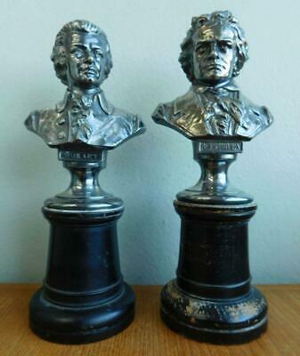 2 X Silver Mounted Portrait Busts MOZART & BEETHOVEN 1800s AK CIE
