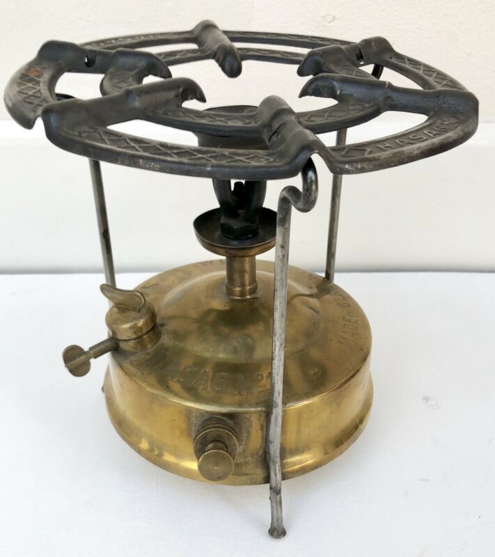 Title (ebay affiliate link): Antique Hard to Find HASAG Germany Camping Stove Brass & Iron No. 1 - NR