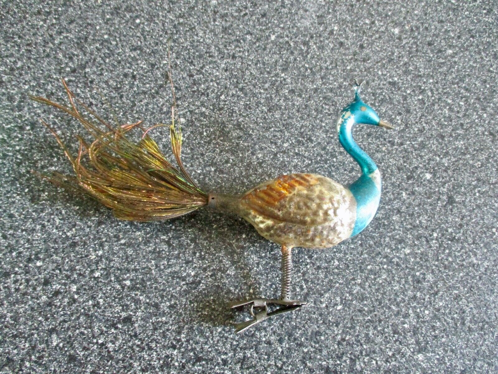 Vintage Mercury glass PEACOCK Bird Clip On Christmas Tree Ornament