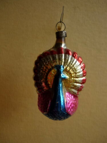 VTG.GLASS BEADED PEACOCK CHRISTMAS TREE ORNAMENT