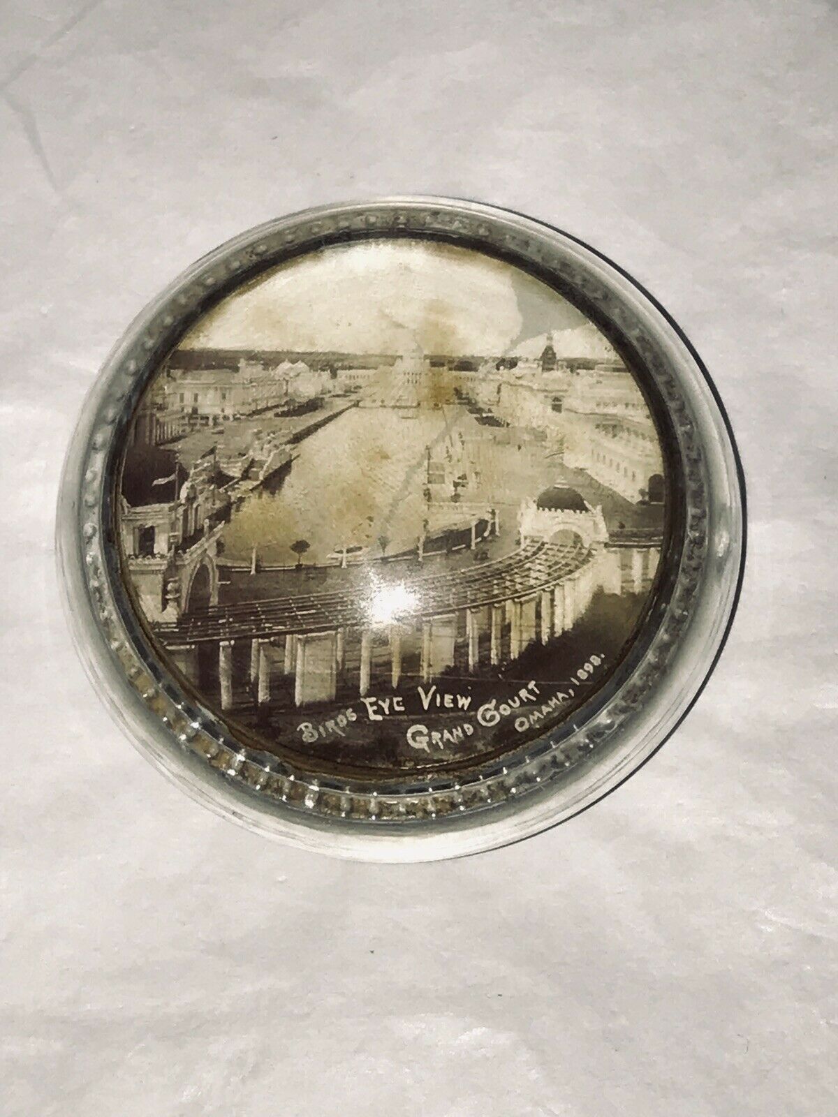 Title (ebay affiliate link): Antique~Round Glass Dome~ Paper Weight~GRAND COURT OMAHA, 1898
