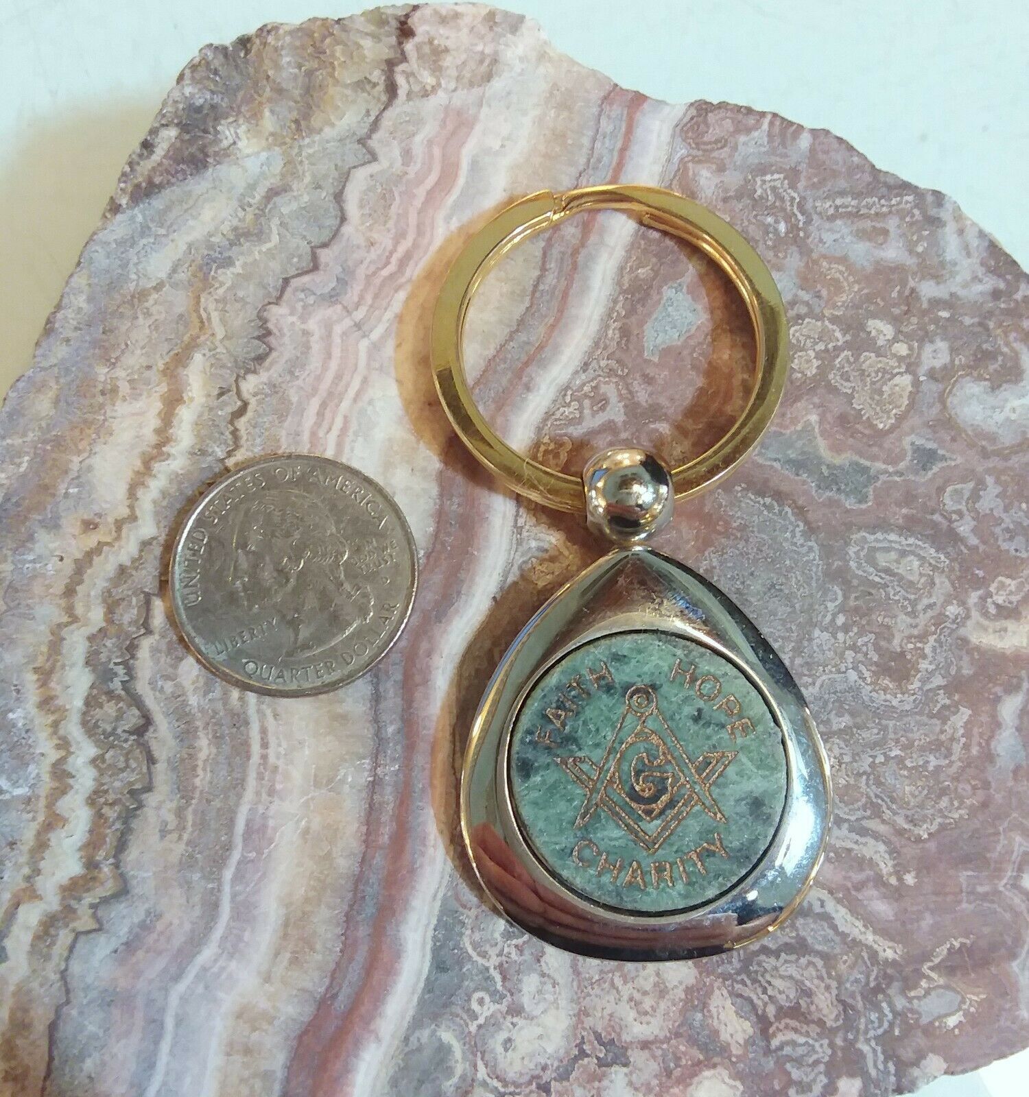 Title (ebay affiliate link): vintage Masonic key chain silver and gold tone etched stone center