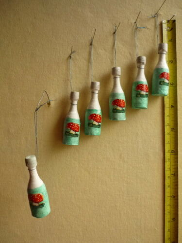 Title (ebay affiliate link): VTG.SIX COTTOON BOTTLES CHRISTMAS TREE ORNAMENT WITH MUSHROOMS