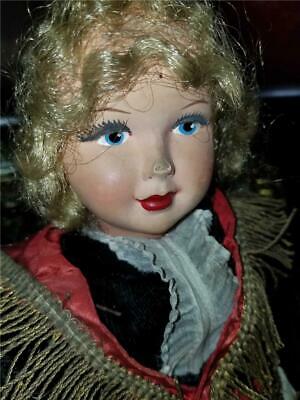 14" Antique 1920s Cellulose Plastic Doll Black Velvet Dress Needs Some Repair