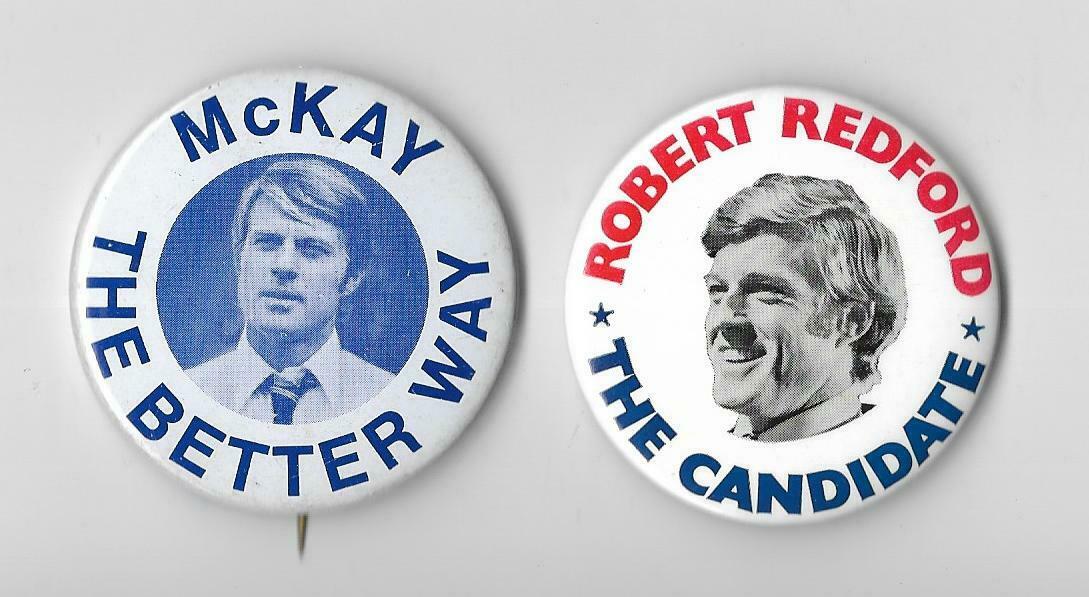 Robert Redford as McKay the Candidate button pin pinback- 2 total