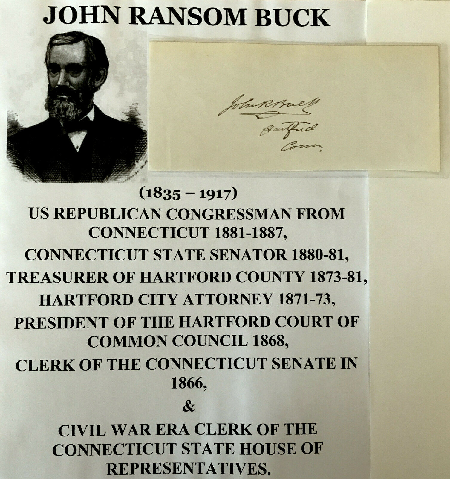 Title (ebay affiliate link): US CONGRESSMAN CONNECTICUT SENATOR HARTFORD CT POLITICIAN BUCK AUTOGRAPH SIGNED