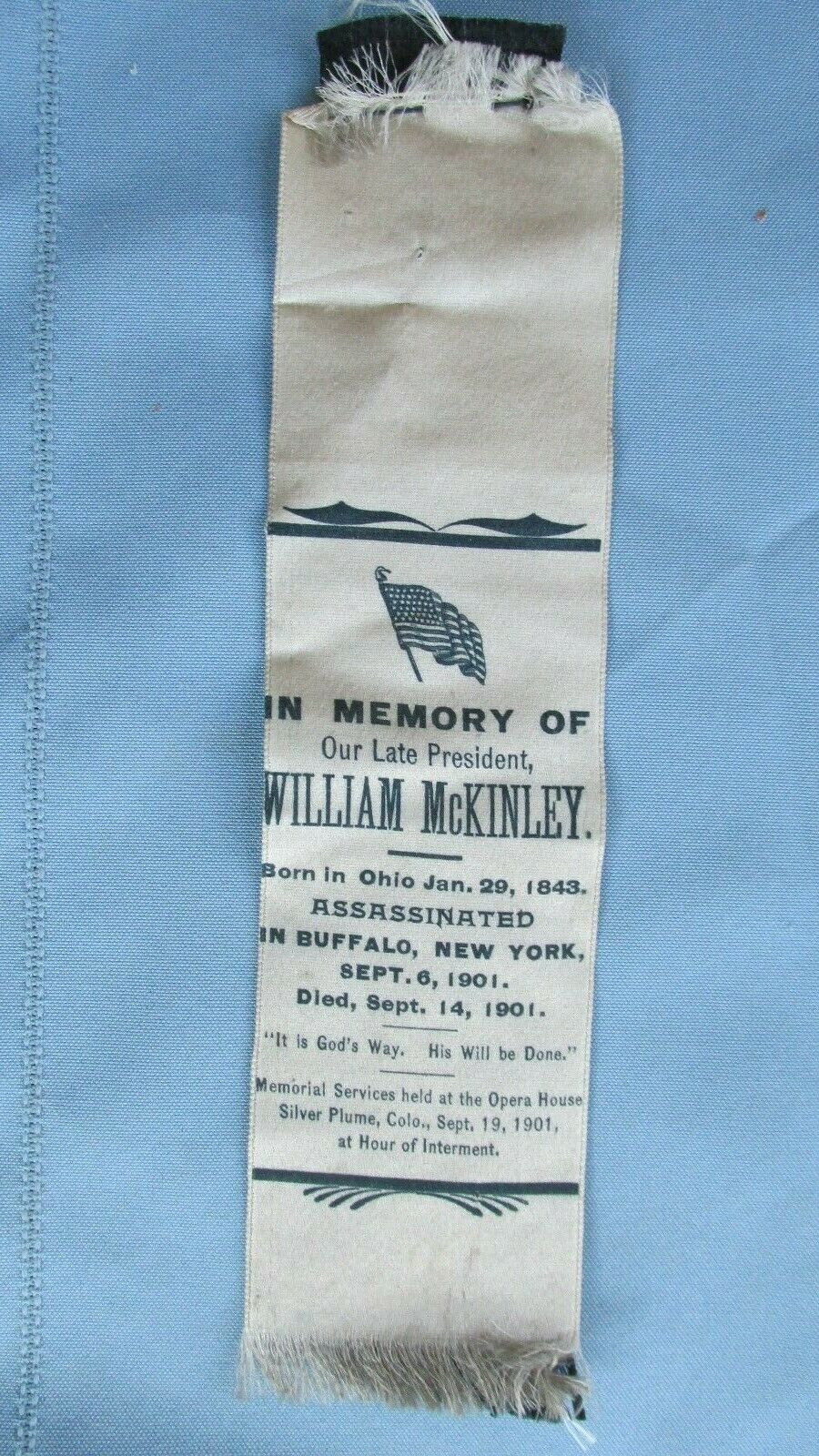Title (ebay affiliate link): 1901 President William McKinley Assasination Memorial Ribbon-Silver Plume Colo.