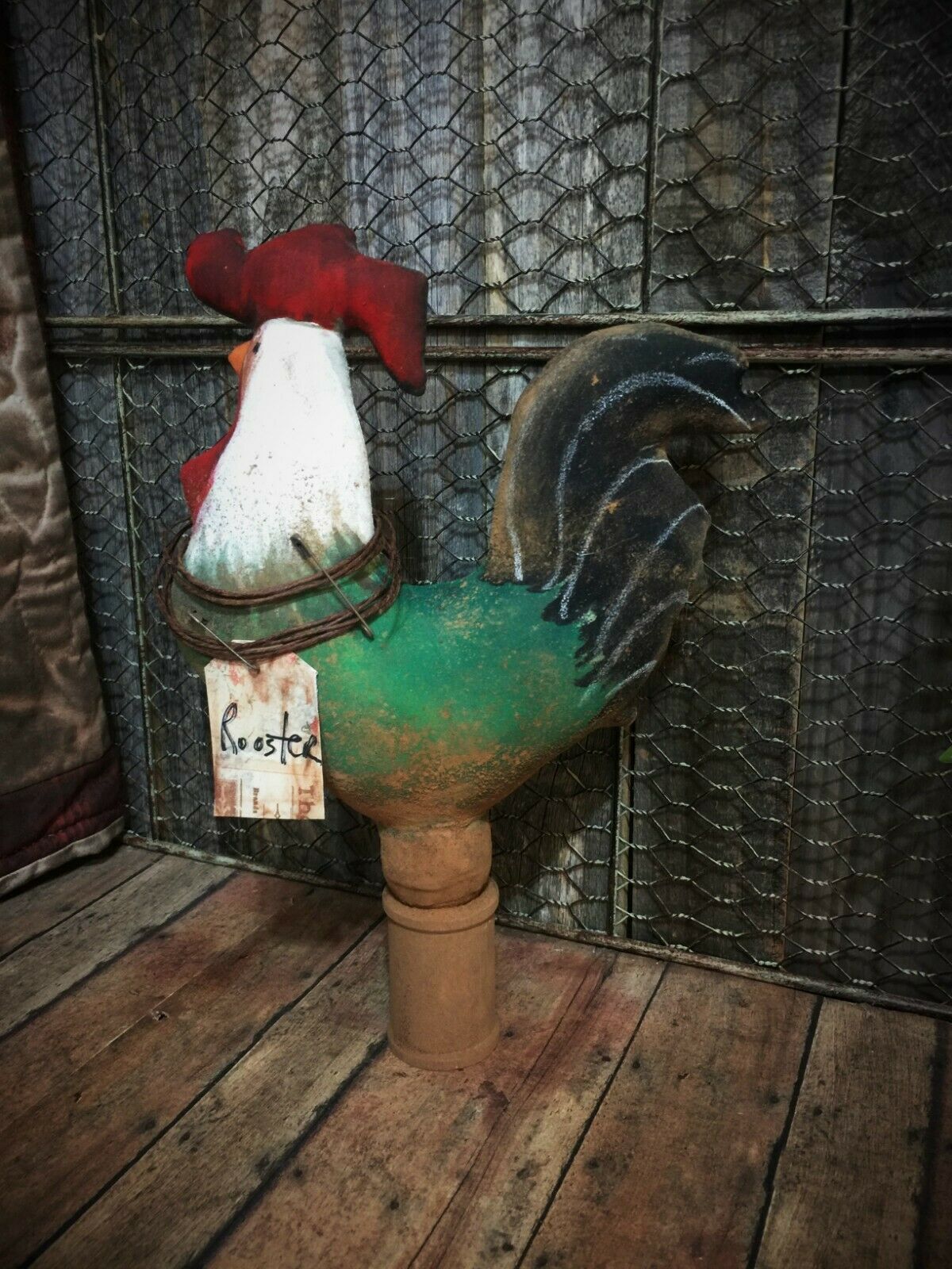 Title (ebay affiliate link): *Primitive 11x7.5in GREEN ROOSTER BOBBIN Handmade Fabric Country old rusty doll*