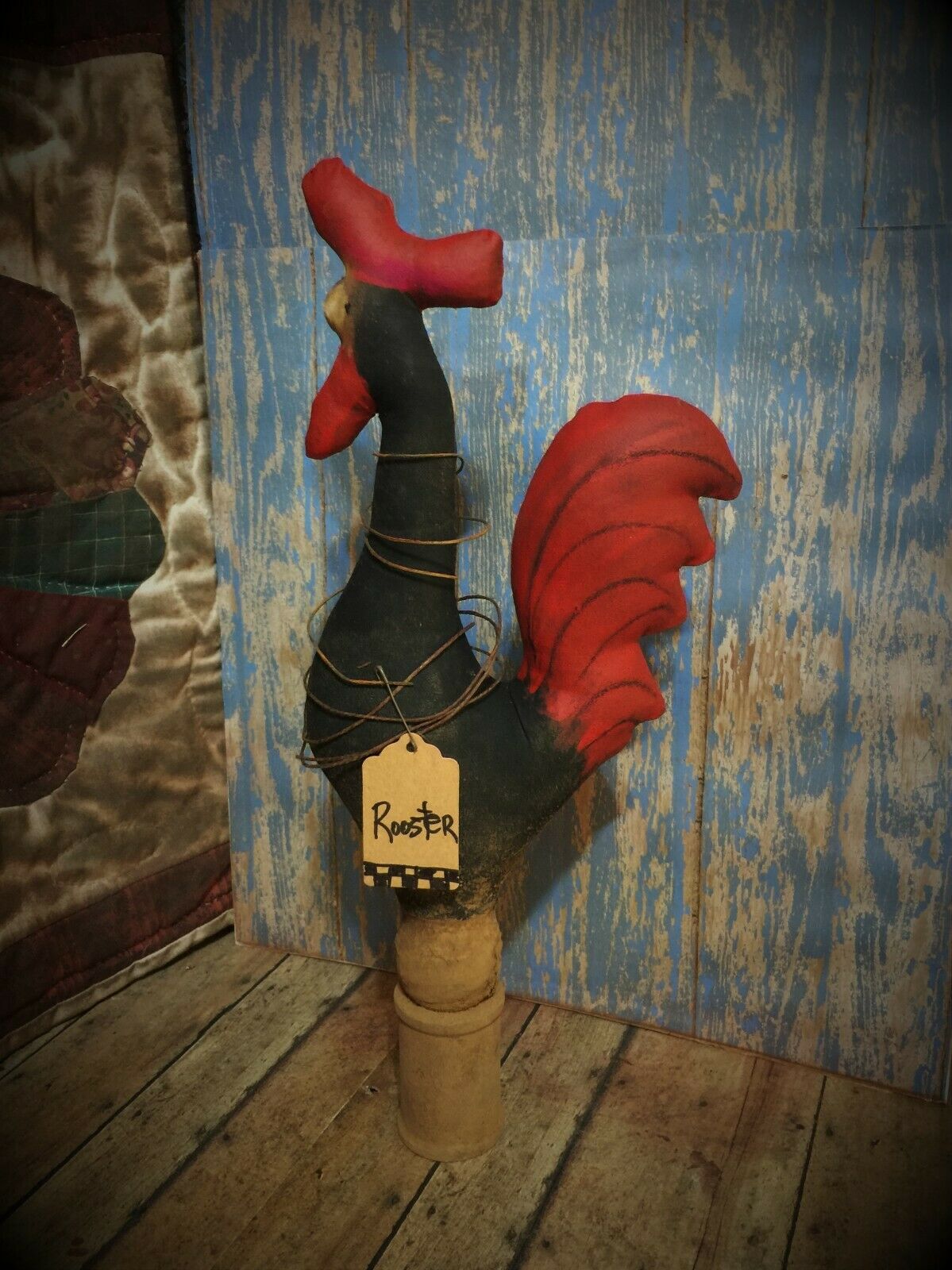 Title (ebay affiliate link): *Primitive 13x6in BLACK THINK ROOSTER Handmade Fabric Country old rusty doll*