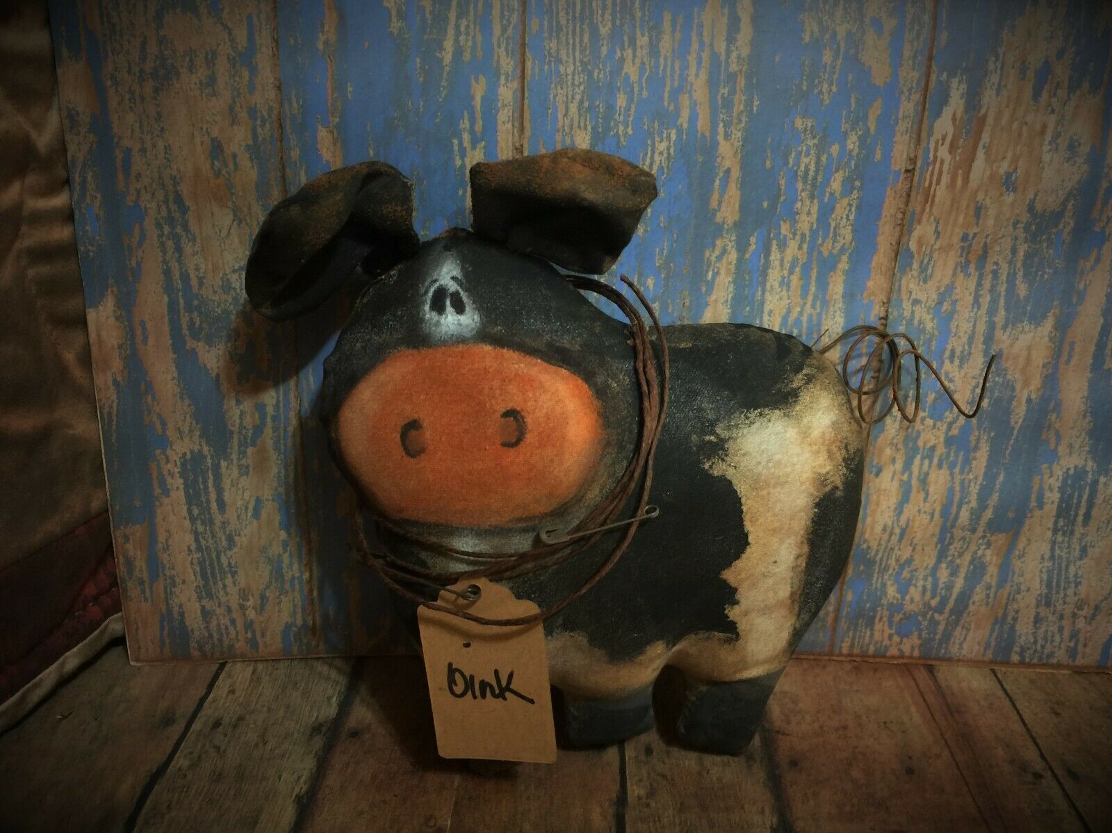 Title (ebay affiliate link): *Primitive 6x6.5in BLACK PIG SHELF SITTERHandmade Fabric Country old rusty doll*