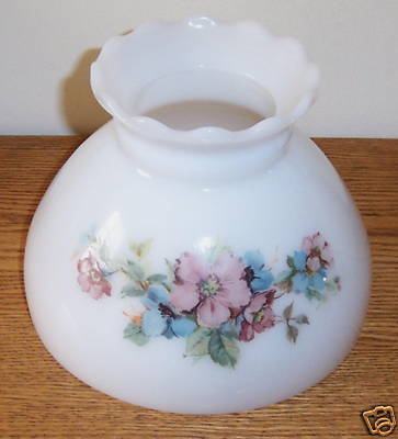 Vintage Milk Glass Oil / Electric Lamp Shade w/ Flowers
