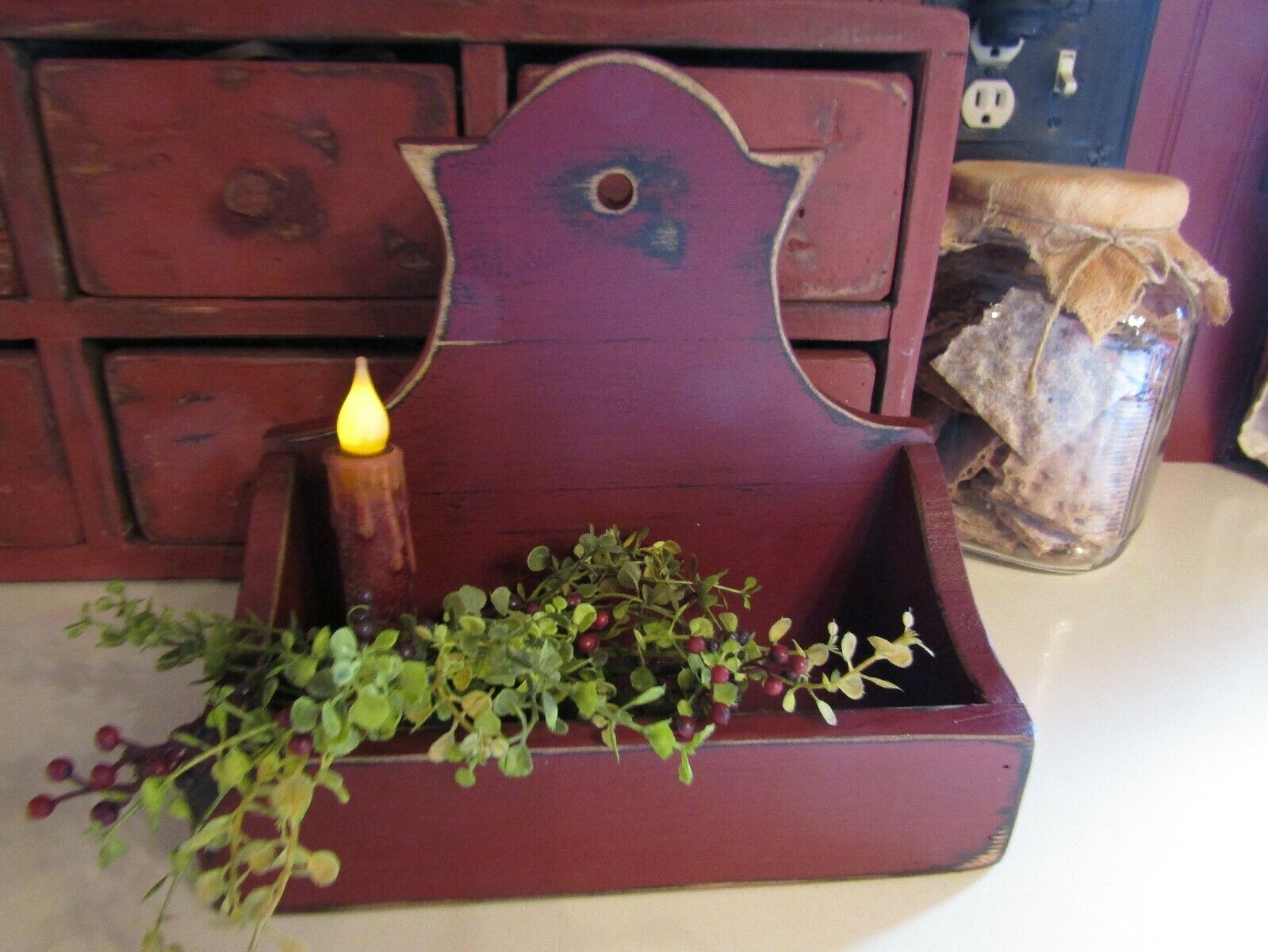 Title (ebay affiliate link): PRIMITIVE CANDLE BOX TO HANG ON WALL OR TABLETOP-MADE BY HUBBY W/CANDLE-GREENS