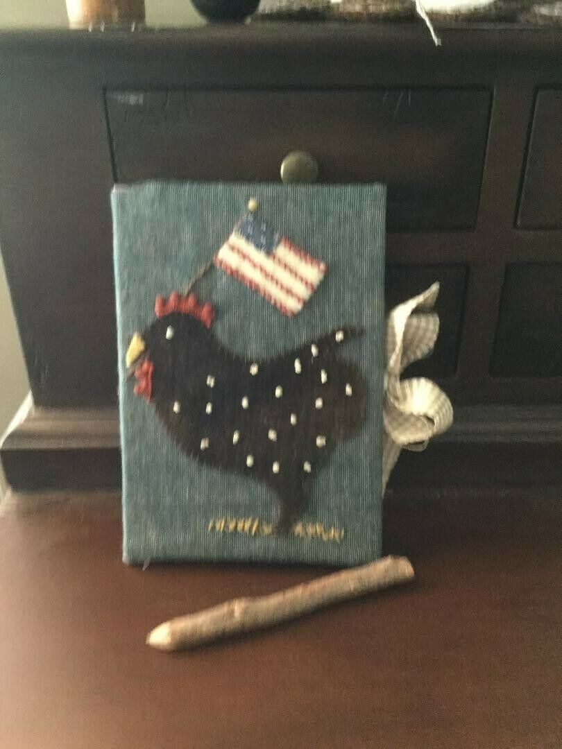 Title (ebay affiliate link): PRIMITIVE HANDMADE PATRIOTIC FABRIC APPLIQUED JOURNAL BOOK - ARTIST MADE