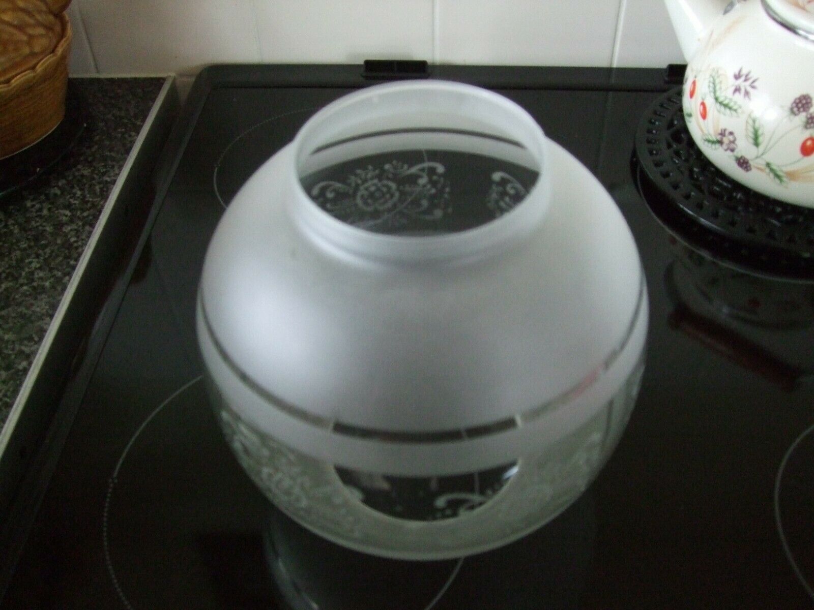 GLASS OIL LAMP GLOBE 10cmBASE 11cm TOP ETCHED DESIGN