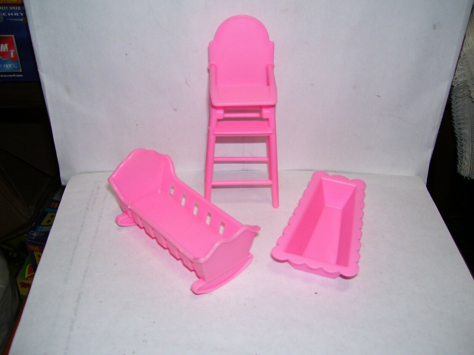 Vintage 1974 Sunshine Family Mattel pink doll house furniture-high chair,cradle