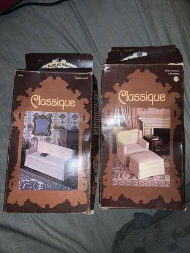 Title (ebay affiliate link): Vintage Doll House Furniture Tuxedo Sofa & Club Chair Millie August Miniatures