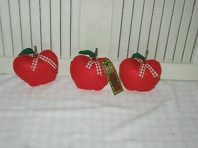 HANDMADE PRIMITIVE FABRIC BOWL FILLERS "FRESH RED APPLES" SET OF 3