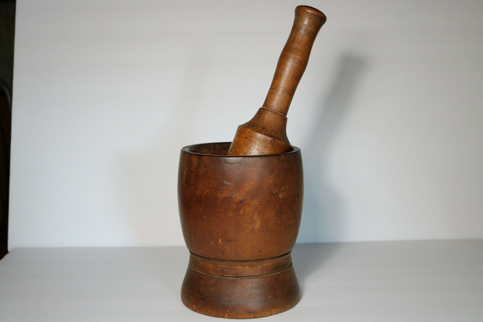 Title (ebay affiliate link): Nice ANTIQUE 19THC WOODEN MORTAR & PESTLE OLD PATINA Nicely Turned Pestle