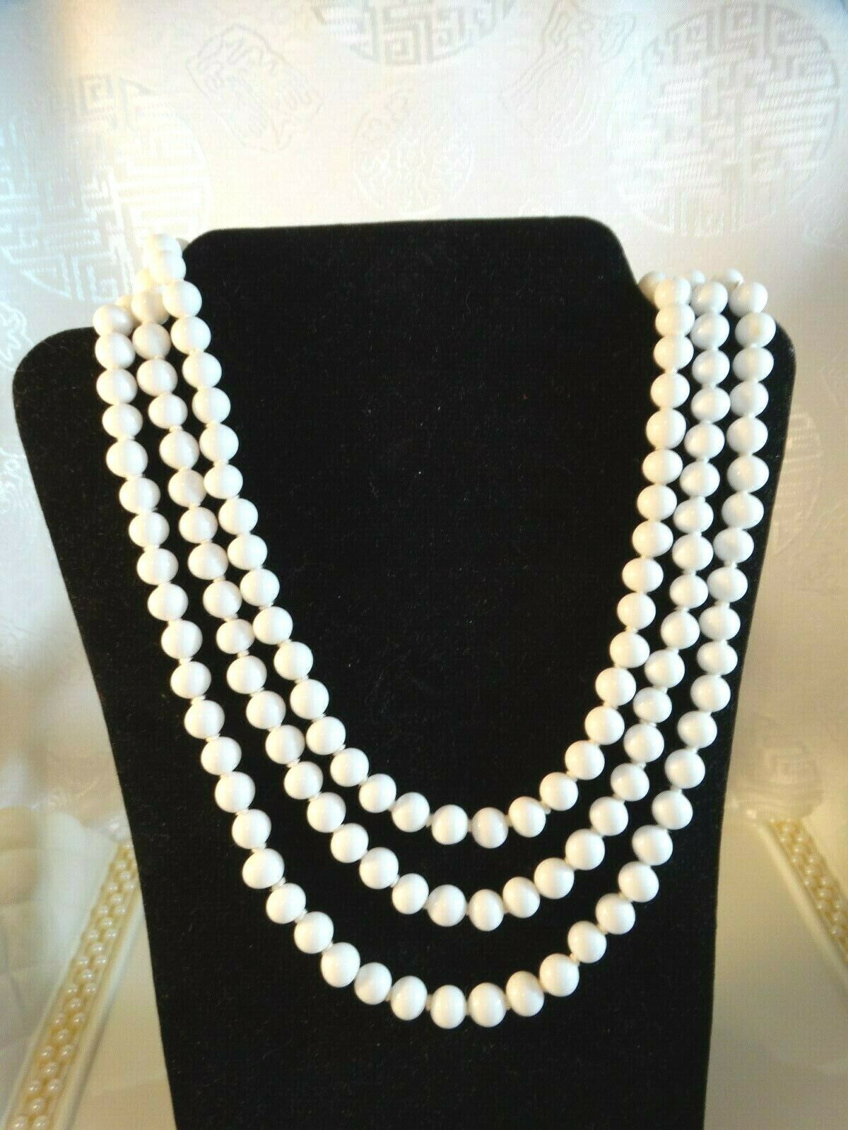 "BEAUTIFUL" VINTAGE 53" MILK GLASS BEAD NECKLACE