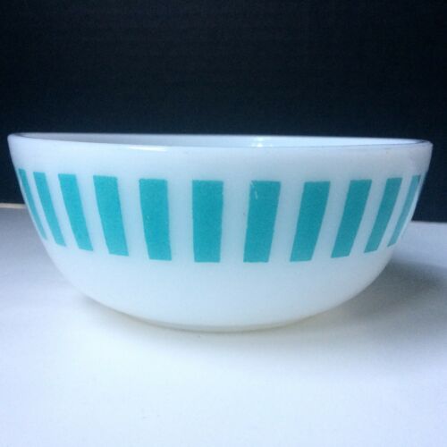 Title (ebay affiliate link): Vintage HAZEL ATLAS Turquoise Candy Stripe Milk Glass Bowl