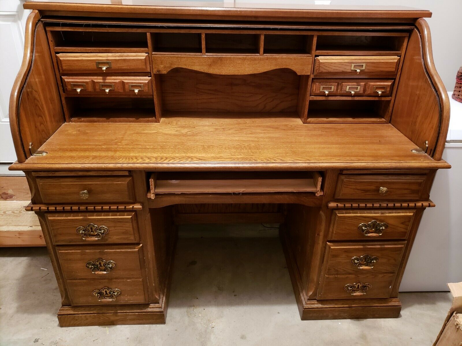 BEAUTIFUL ROLLTOP DESK - Solid Oak Wood
