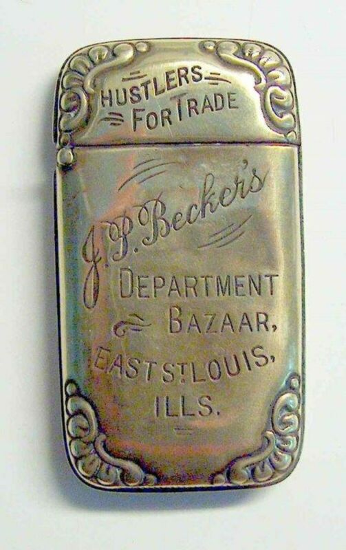 Title (ebay affiliate link): Antique Vintage Match Safe 1800s Clothier Advertising JP Beckers MUST SEE