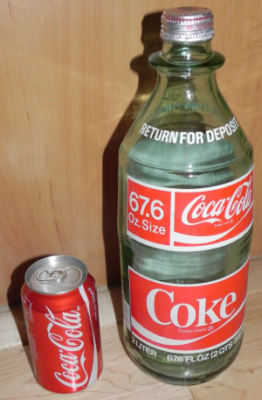 Title (ebay affiliate link): NICEunusual 2 liter 67.6 oz SIZE coca COLA coke BOTTLE