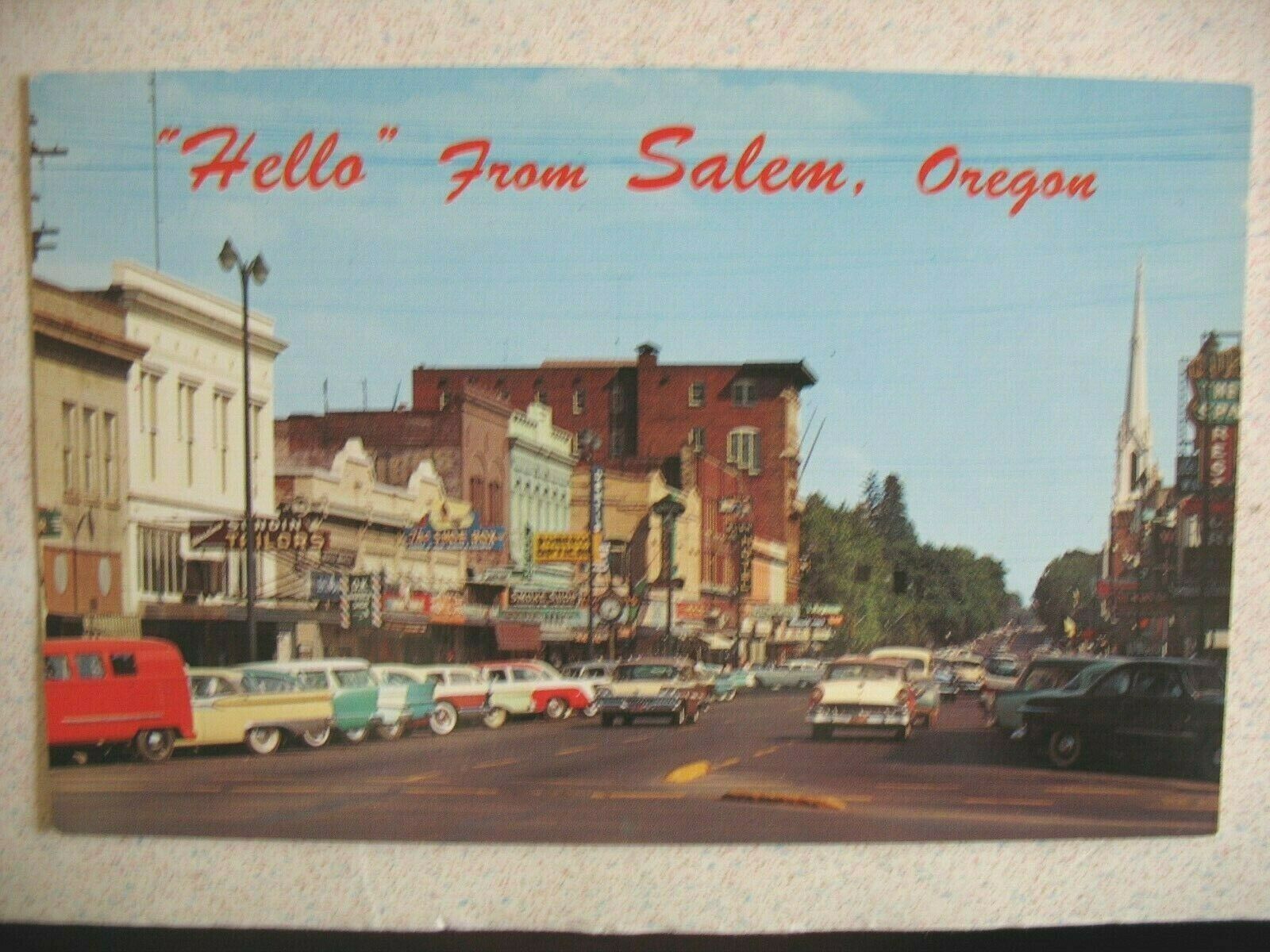 Title (ebay affiliate link): SALEM, OR ~ 1950s STATE STREET downtown businesses & First Methodist Church