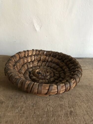 Old Smaller Handmade Antique Rye Straw Basket Patina AAFA