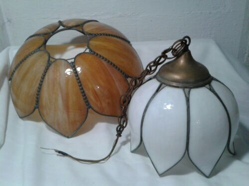 Title (ebay affiliate link): Vintage Rare 2 piece Swag Slag Glass Tulip Hanging Light Lamp Panel Shade Orange
