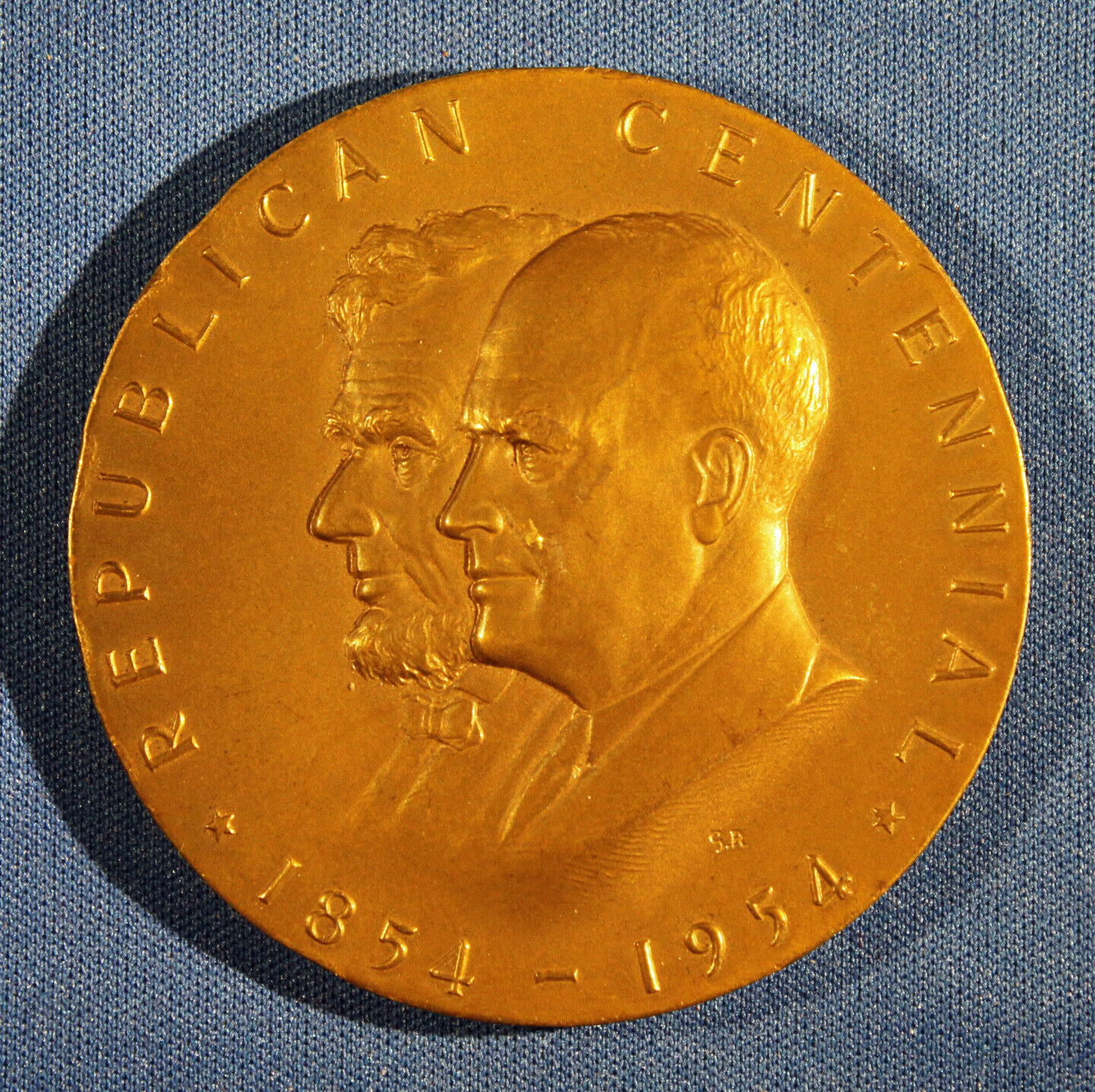 Title (ebay affiliate link): 1954 REPUBLICAN CENTENNIAL BRONZE MEDALLION WITH LINCOLN AND EISENHOWER