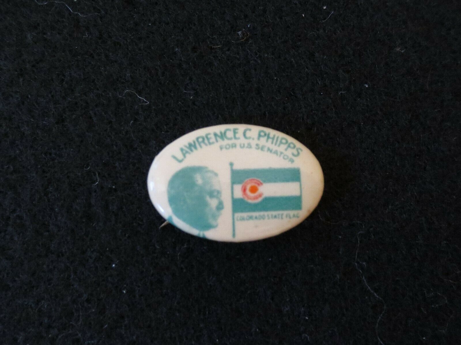 Title (ebay affiliate link): Celluloid Pinback with Colorado Flag for Lawrence Phipps, US Senator, Colorado