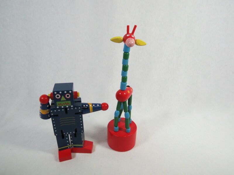 Title (ebay affiliate link): Pop Push up wooden Giraffe Finger Puppet & Original Toy Co Wooden Robot