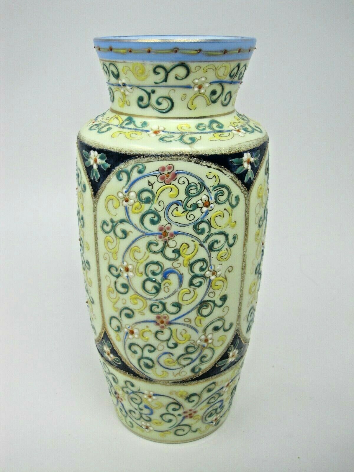 Beautiful Antique Japanese Chinese Moriage Floral Glass Vase 9" Signed