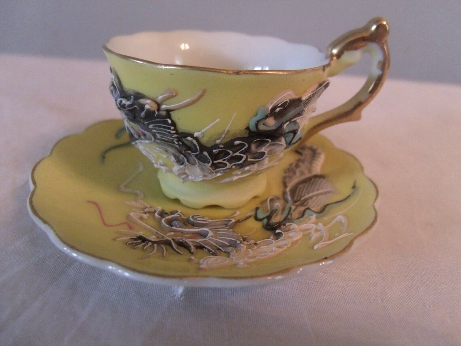 Vintage Miniature Yellow Dragon Teacup & Saucer Estate Find