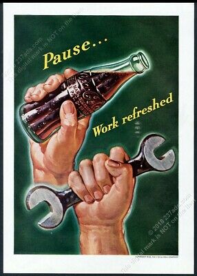 Title (ebay affiliate link): 1942 Coke classic bottle mechanic wrench art Coca Cola vintage print ad