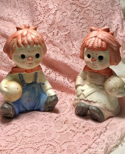 vintage, raggedy ann and andy coin bank, Chalkware Decor, Lot of Two