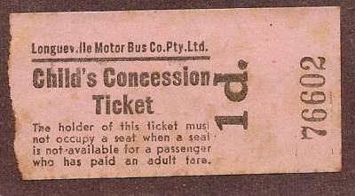 SYDNEY LONGUEVILLE BUS LINES 145 1d CHILD BUS TICKET