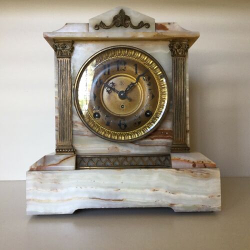 Antique Florenz Kroeber (FK) Alabaster Mantel Clock // Circa 1870-1900