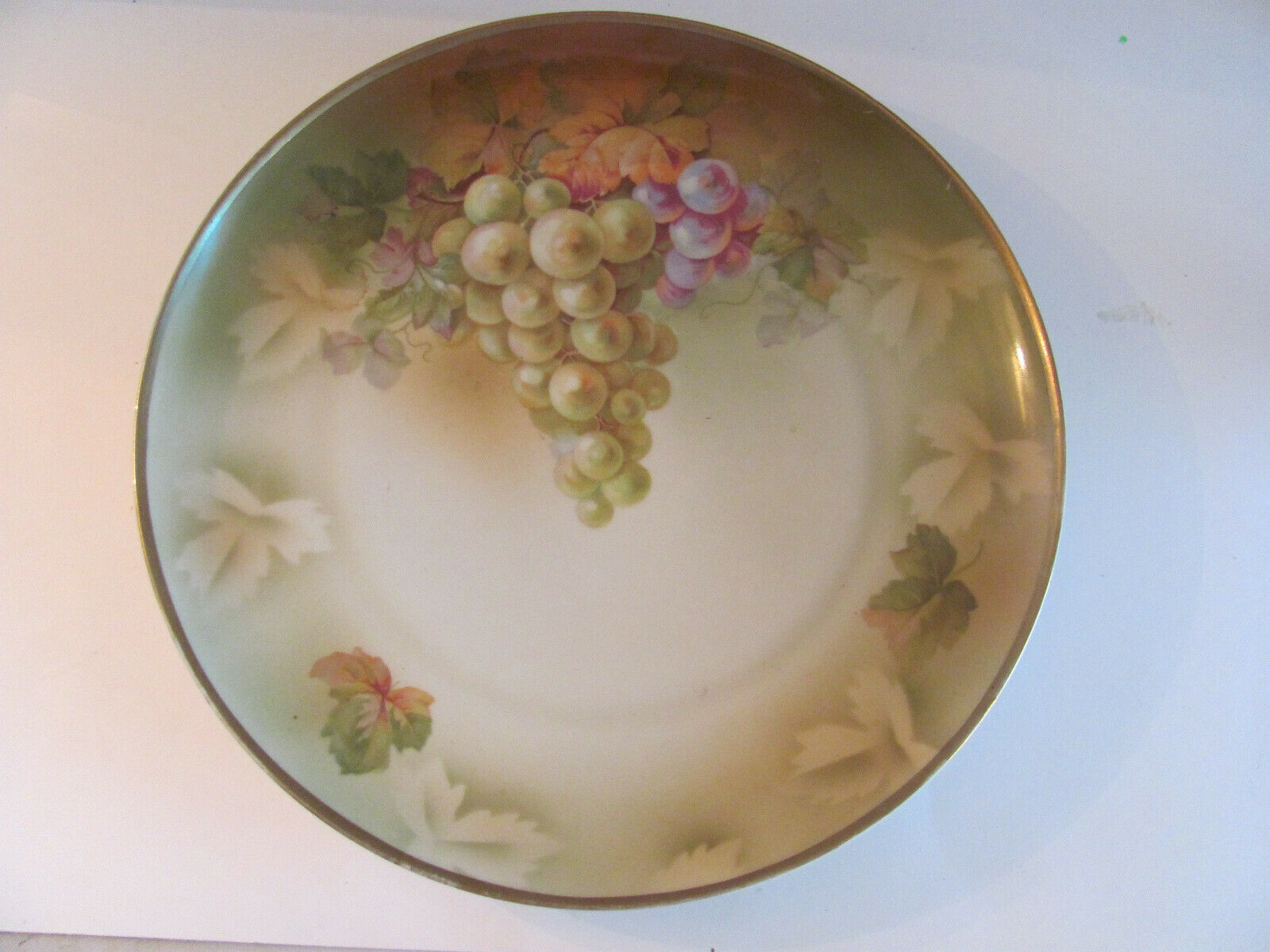 PORCELAIN 9 1/2" GOLD GILDED PLATE W GRAPES MARKED MZ AUSTRIA