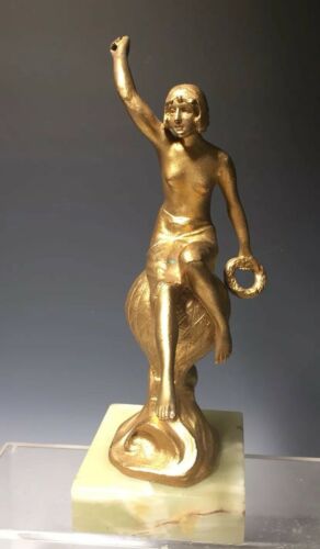 Antique Bronze of Sculpture Seated Woman on Onyx Base