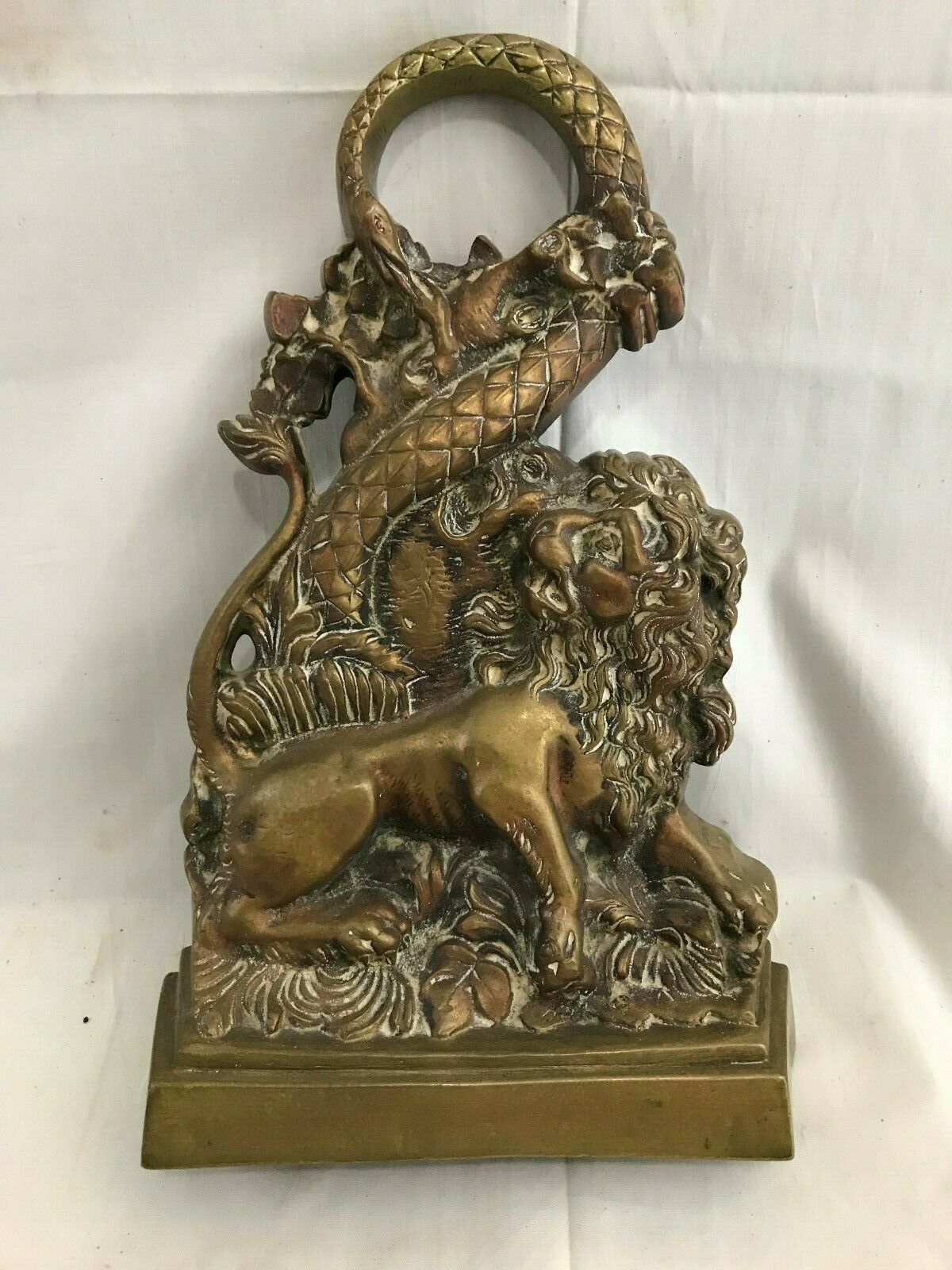 Title (ebay affiliate link): Great Orig. 19thC Antique English Cast Brass Lion & Serpent Snake Doorstop 11"